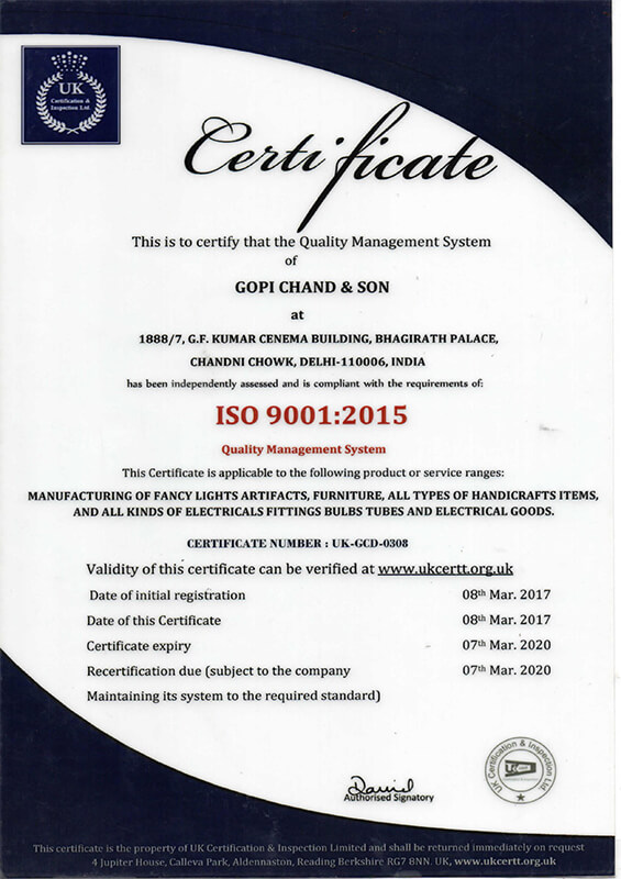 Established in 1952, Gopi Chand And Son is India’s premier decorative lighting solutions brand providing a diverse range of fancy lights for different occasion and location. The company was incepted by Shri GopiChand Ji Jindal at Bhagirath Place more than 60 years ago and today owns a chain of more than 20 boutique showrooms in different cities of India. TM The range offered by Gopi Chand And Son reflects the brand’s penchant for luxury designs. The brand is not just another name for fancy lighting solutions but is a legacy in itself with in-depth knowledge and taste in contemporary arts and handicrafts.